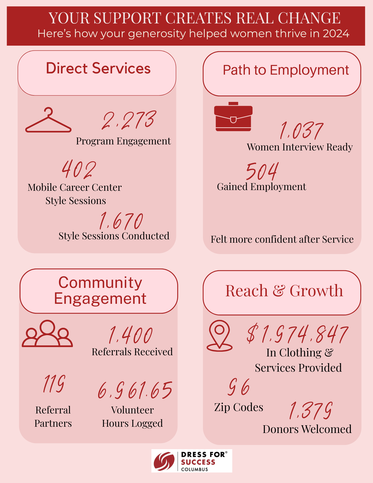 Dress for Success Columbus respects the privacy of its donors. We deeply value the contributions that our donors make to sustain the mission of Dress for Success Columbus.